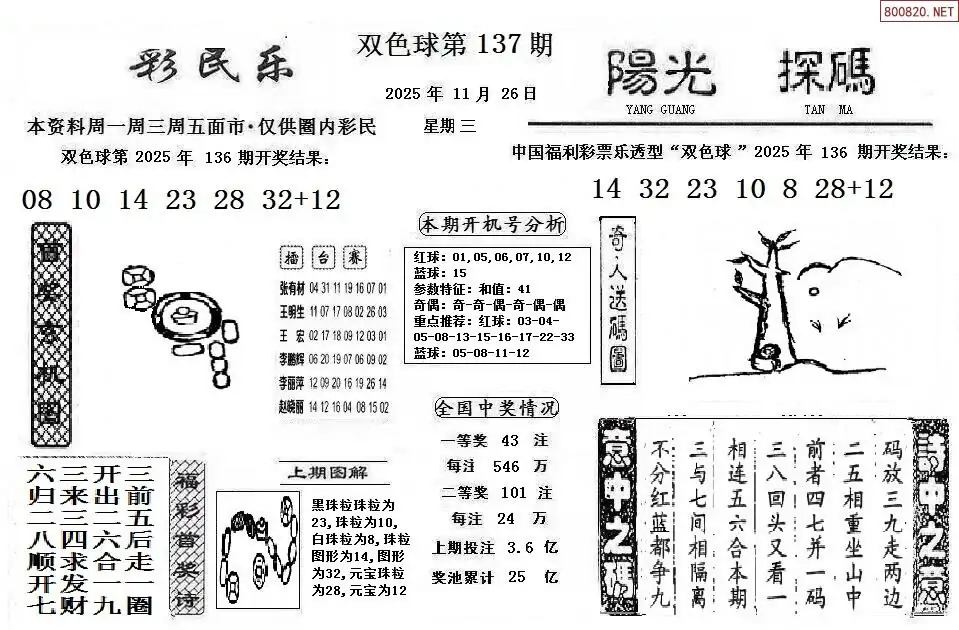 14 双色球25137期牛彩字谜诗迷汇总(天