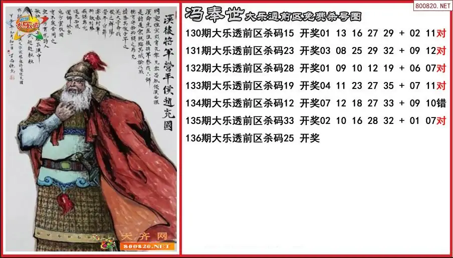 冯奉世2025136期大乐透前区免费杀号图-原创