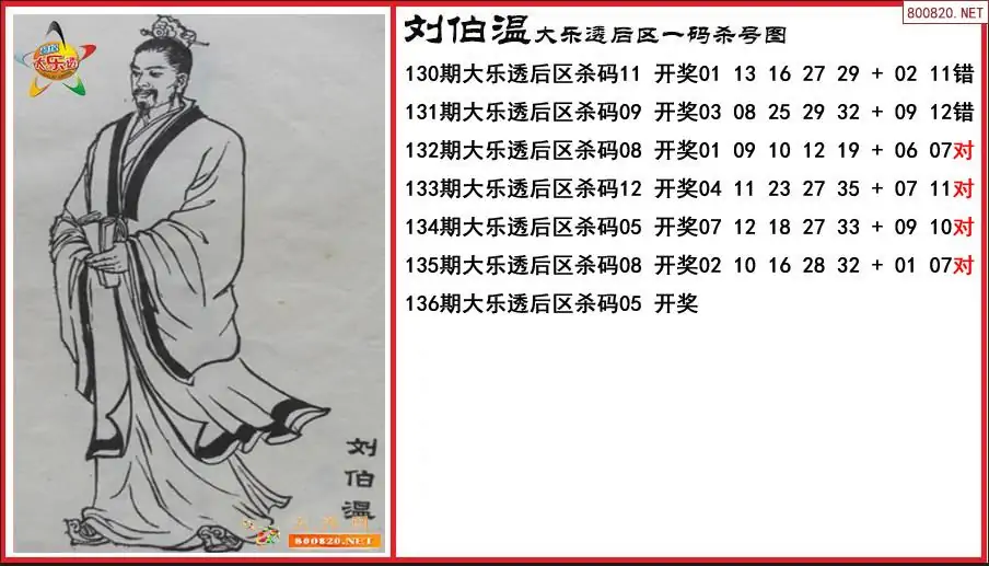 刘伯温2025136期大乐透后区一码杀号图-原创