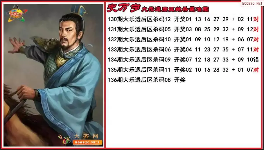 史万岁2025136期大乐透后区绝杀最准图-原创
