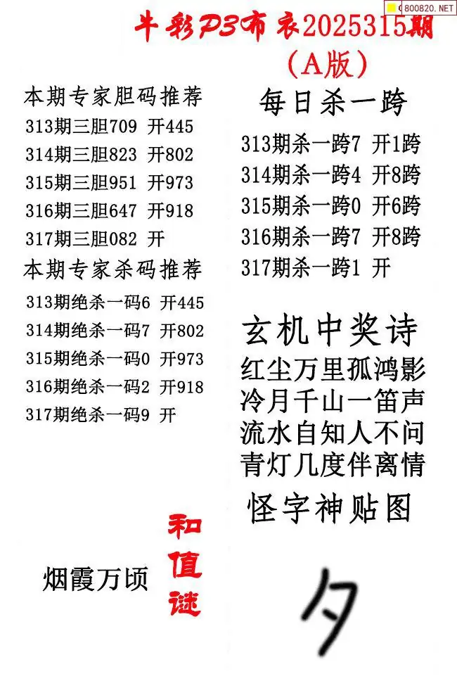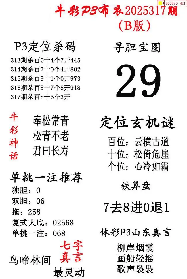 牛彩体彩P3布衣2025年317期AB版图谜(精华版)