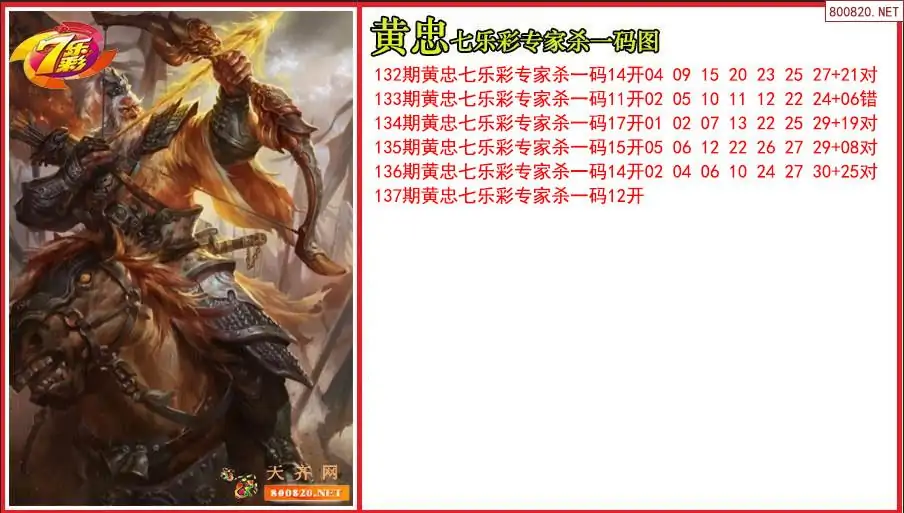 黄忠2025137期七乐彩专家杀一码图