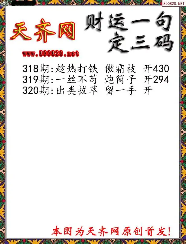 320期财运3D一句定三码字图谜