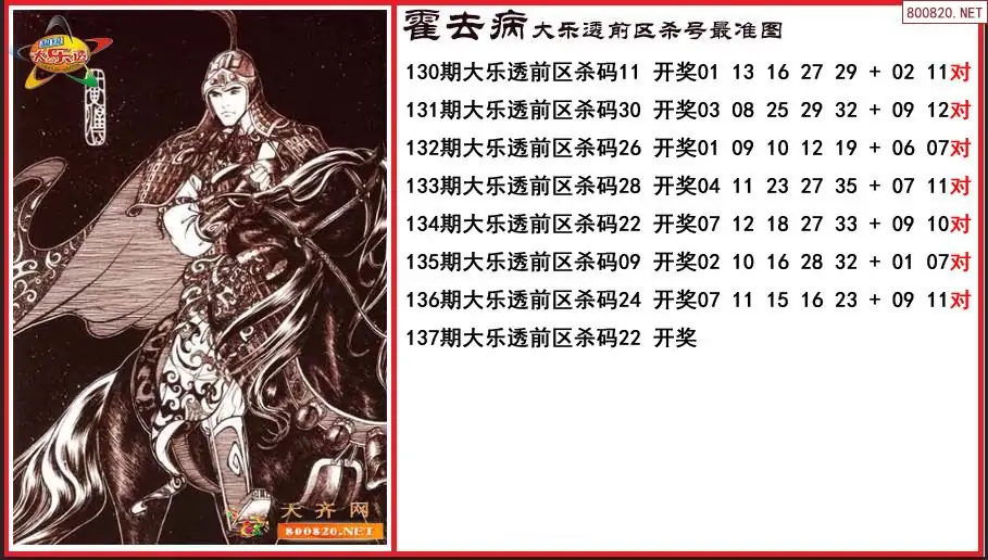 霍去病2025137期大乐透前区杀号更准图-原创