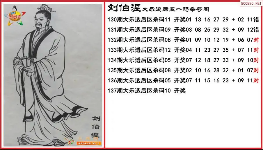 刘伯温2025137期大乐透后区一码杀号图-原创