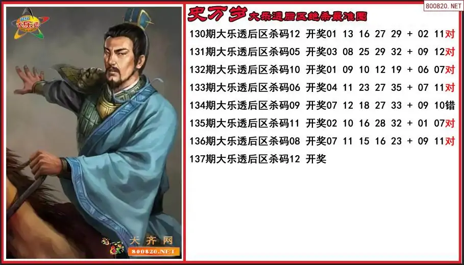 史万岁2025137期大乐透后区绝杀最准图-原创
