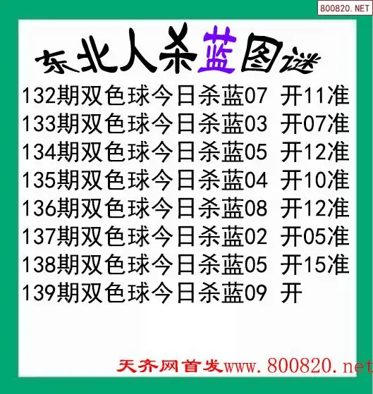 2025139期双色球精选杀蓝汇总