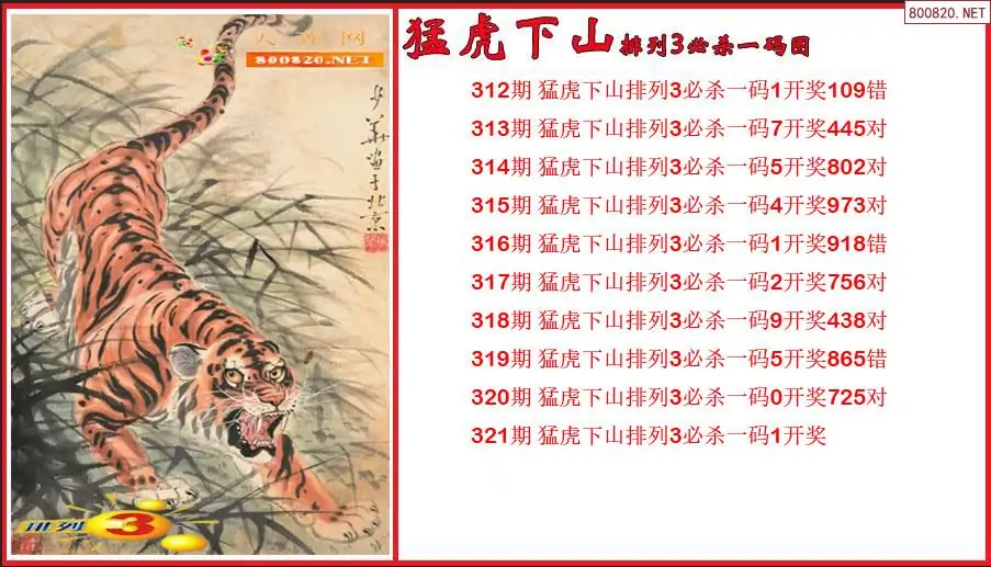 猛虎下山2025321期排列3必杀一码图(原创)