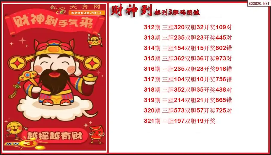 财神到2025年排列3第321期胆码图谜(原创)