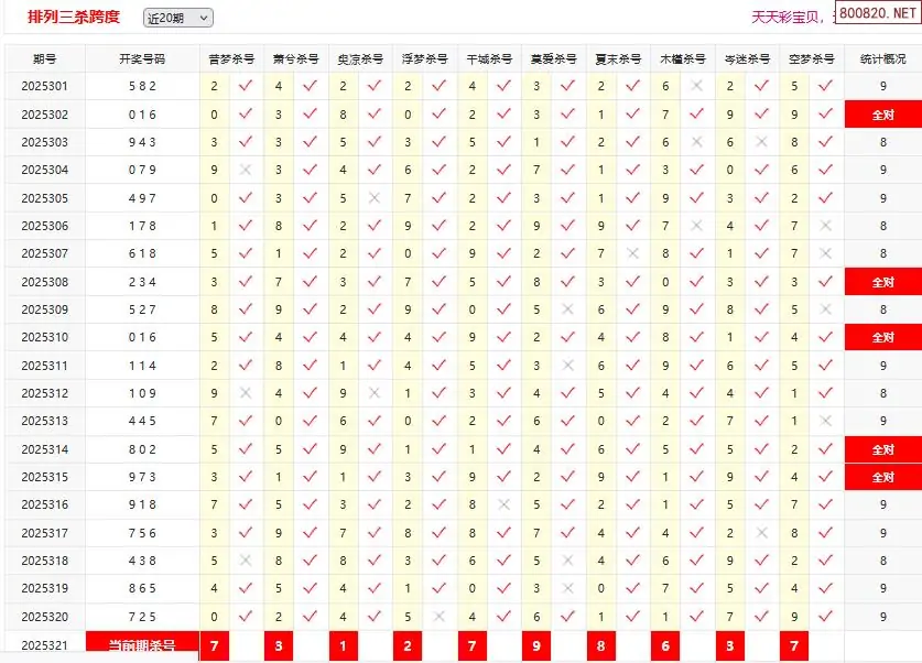 4 体彩排列三2025321期[圆圆]杀跨度