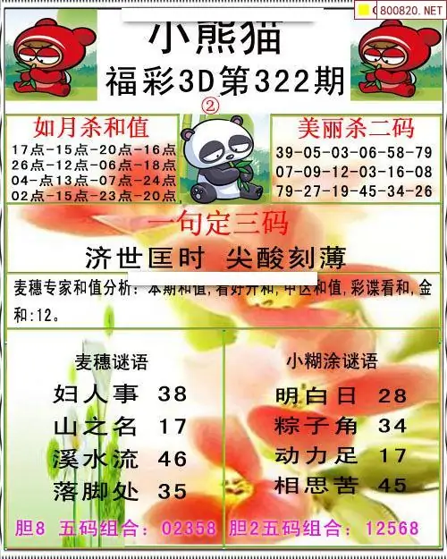 小熊猫25322期美安和值+一句定三码3d图谜