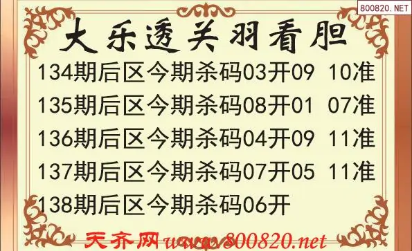 8 大乐透2025138期天下无贼后区杀号
