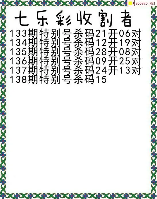 七乐彩25年138期收割者特别号杀码图迷