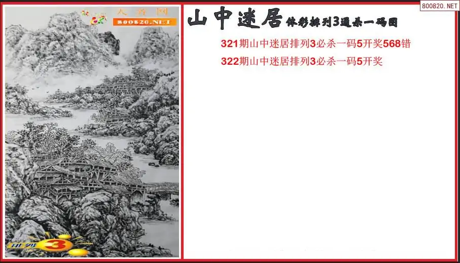 2025322期山中迷居体彩排列3通杀一码图(原创)