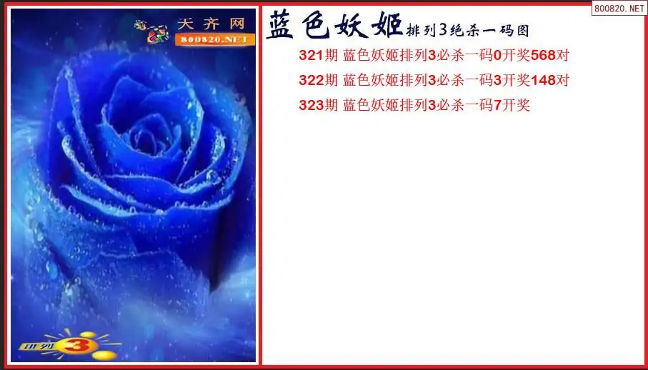 2025年蓝色妖姬323期排列3绝杀一码图(原创)