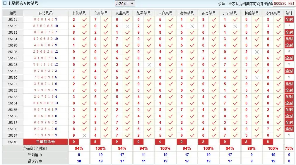 20 澳客七星彩140期十大专家杀二位