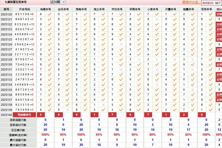 25 七星彩2025140期无畏第七位杀号推