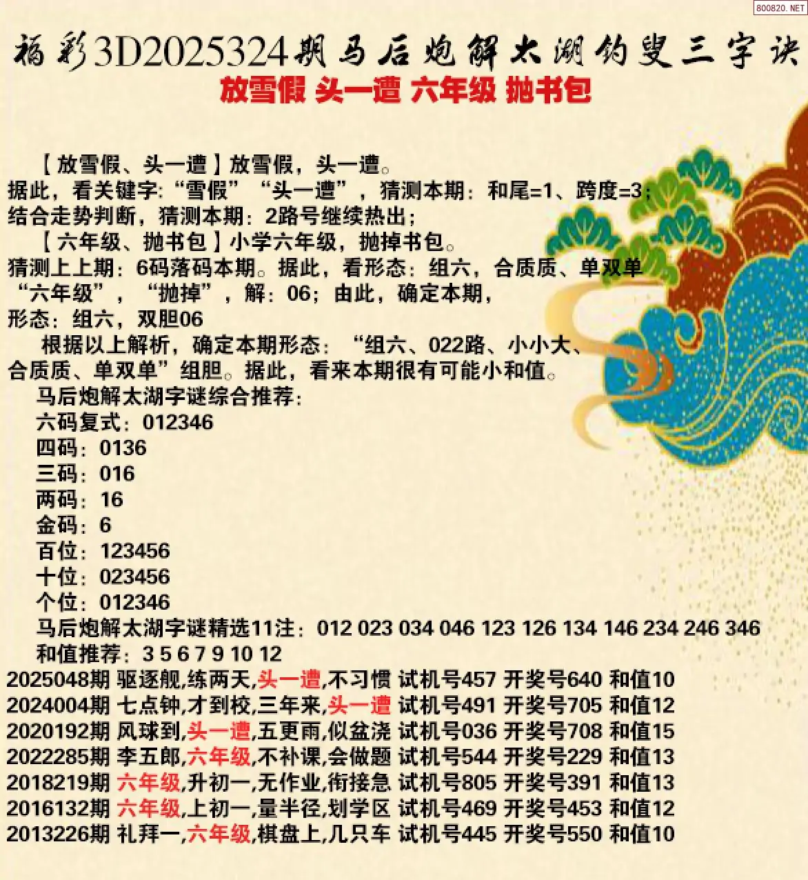 23 25年324期[枭雄]解太湖3d字谜抛书