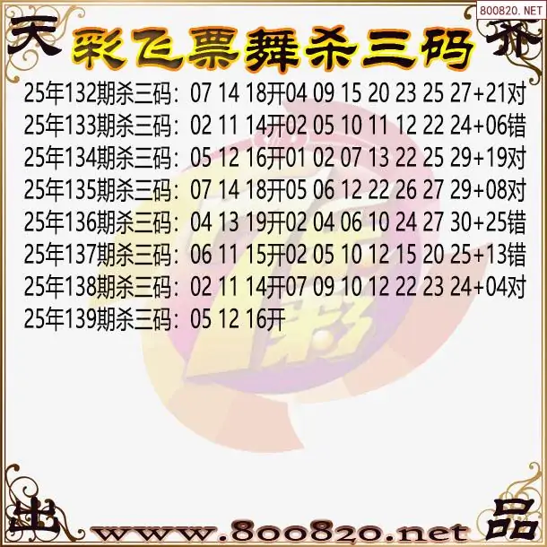 彩飞票舞25年139期七乐彩杀号图谜