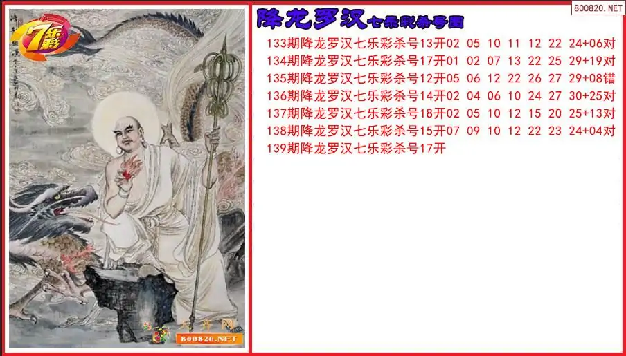 七乐彩2025139期降龙罗汉杀号图