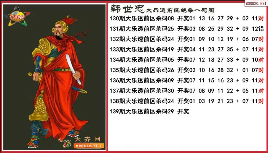 韩世忠2025139期大乐透前区绝杀一码图-原创
