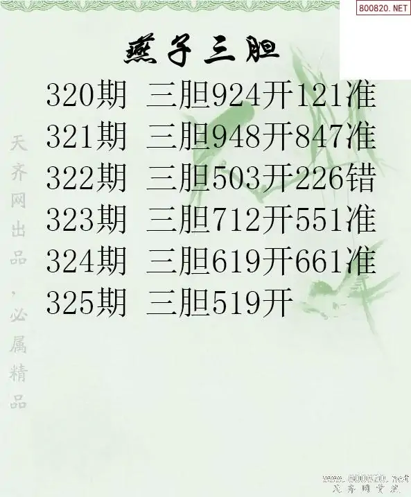 25325期燕子三胆3d胆码图谜-天齐原创