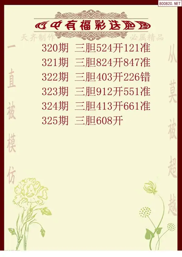 2025年325期心中有福福彩送胆图谜(天齐网原创)