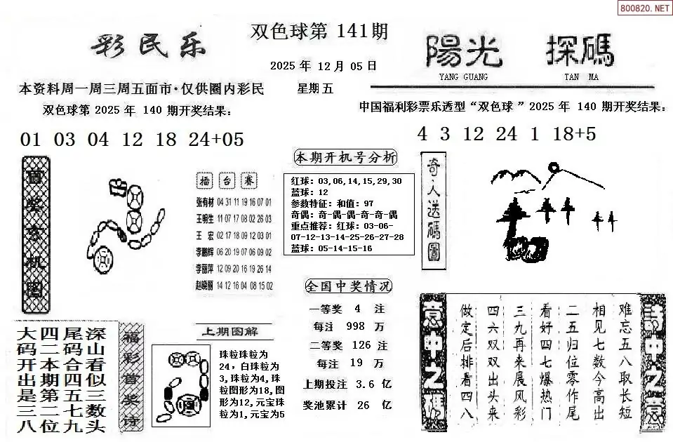 1 双色球25年141期阳光探码+彩民乐图