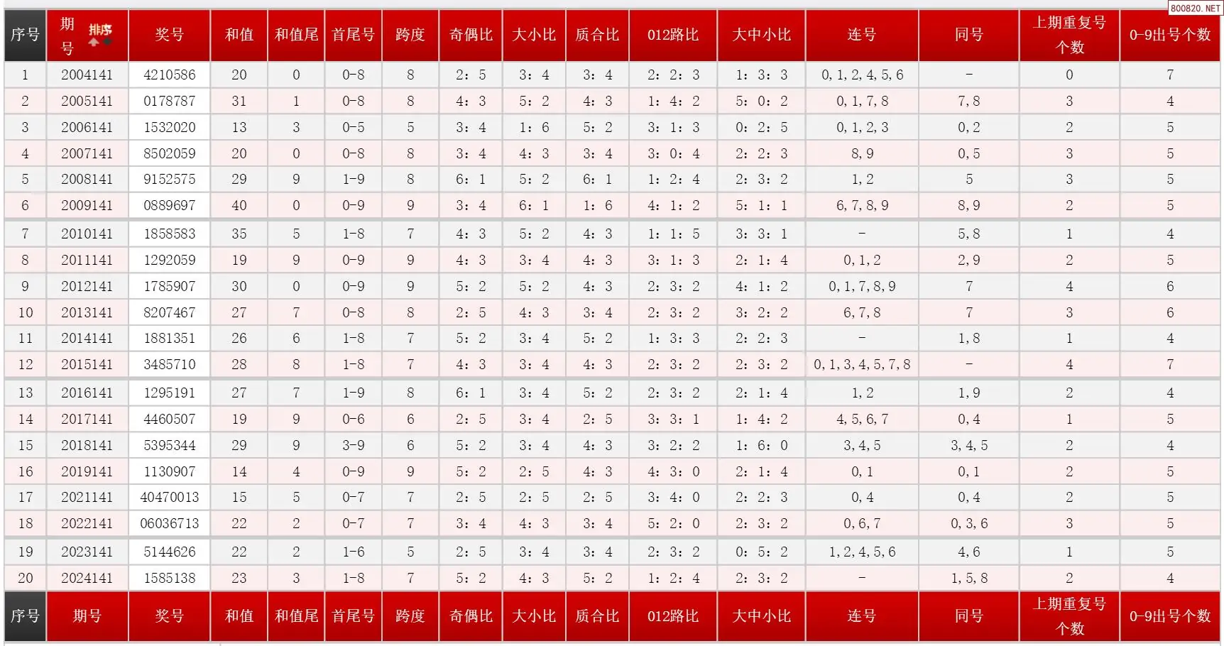 141期体彩七星彩历史同期对比图表+近期走势图分析