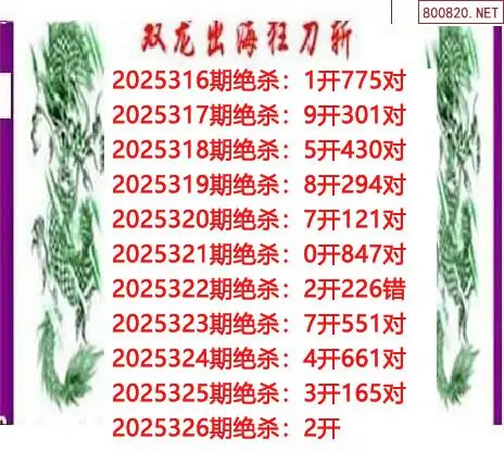 25326期双龙双胆杀码3d图谜