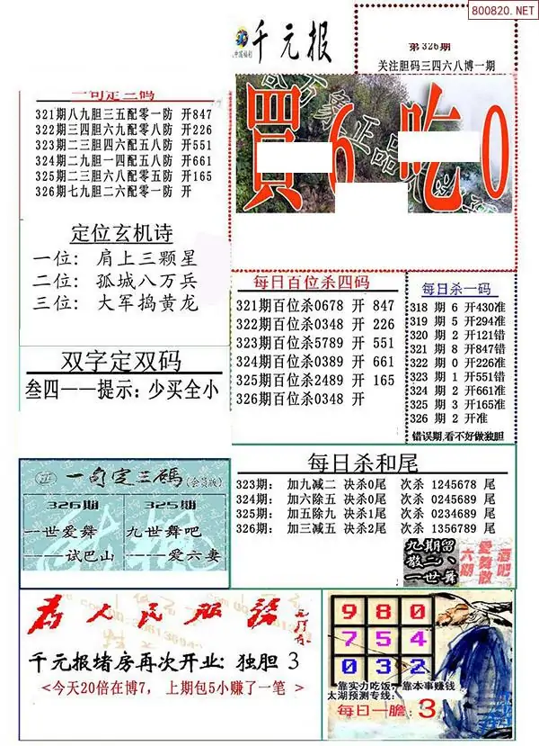 16 鬼六图25326期鬼六神算报+鬼六胆码
