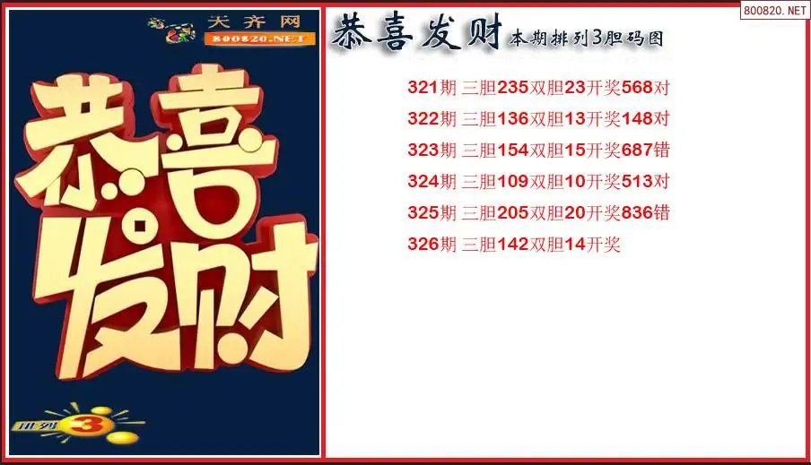 恭喜发财2025326期本期排列3胆码图(原创)
