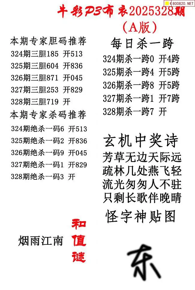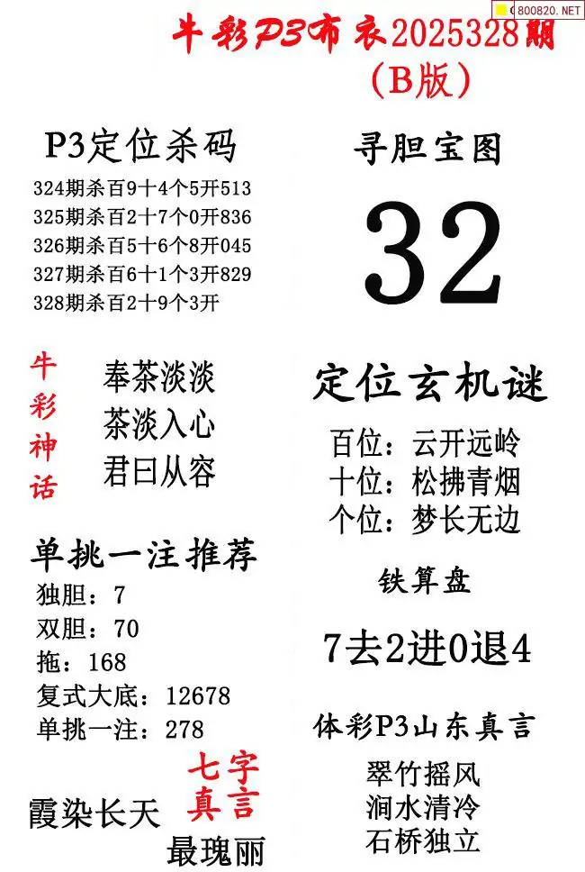 牛彩体彩P3布衣2025年328期AB版图谜(精华版)