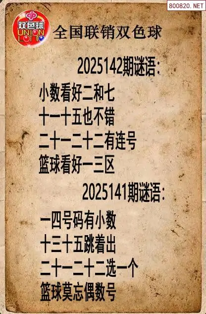 4 2025142期天齐网今晚双色球字谜总