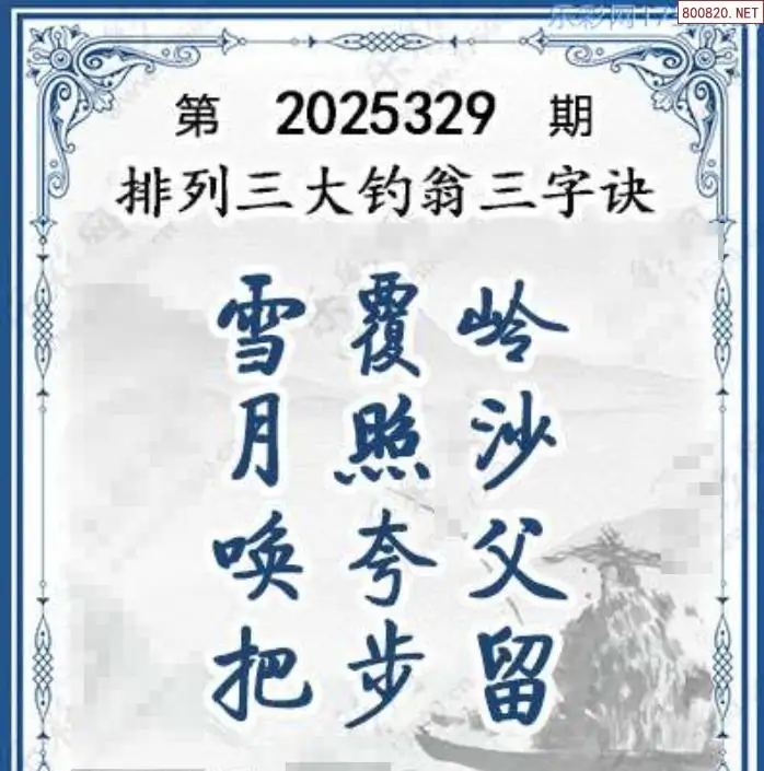 25年329期体彩p3大钓翁三字诀