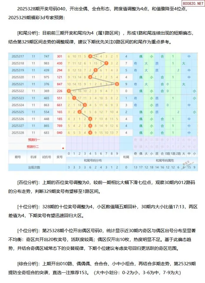 福彩3D第2025329期[玩彩高手]最准最新3d号码预测