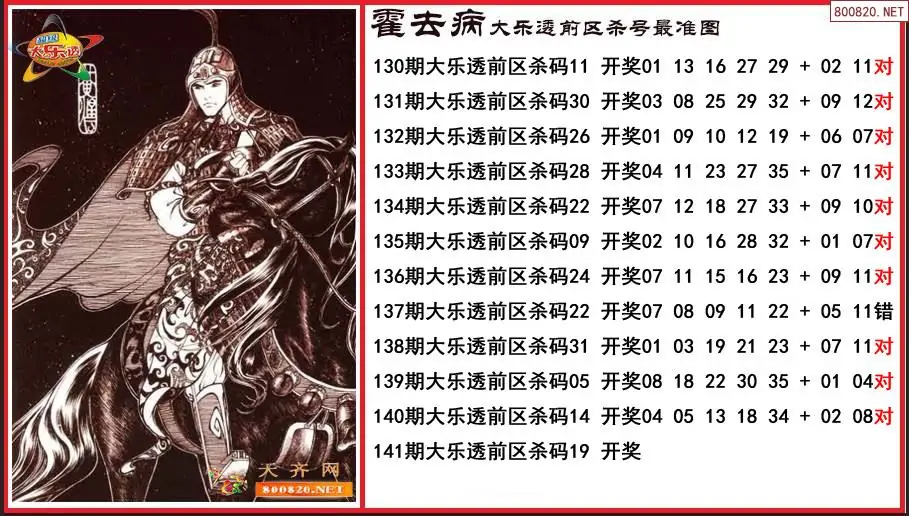 霍去病2025141期大乐透前区杀号更准图-原创