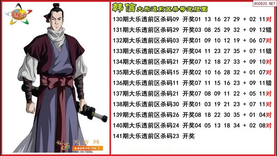韩信2025141期大乐透前区杀号定胆图-原创