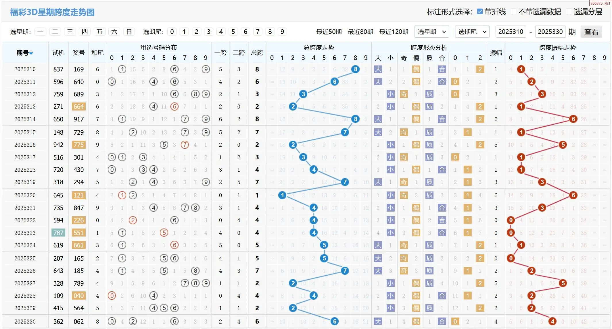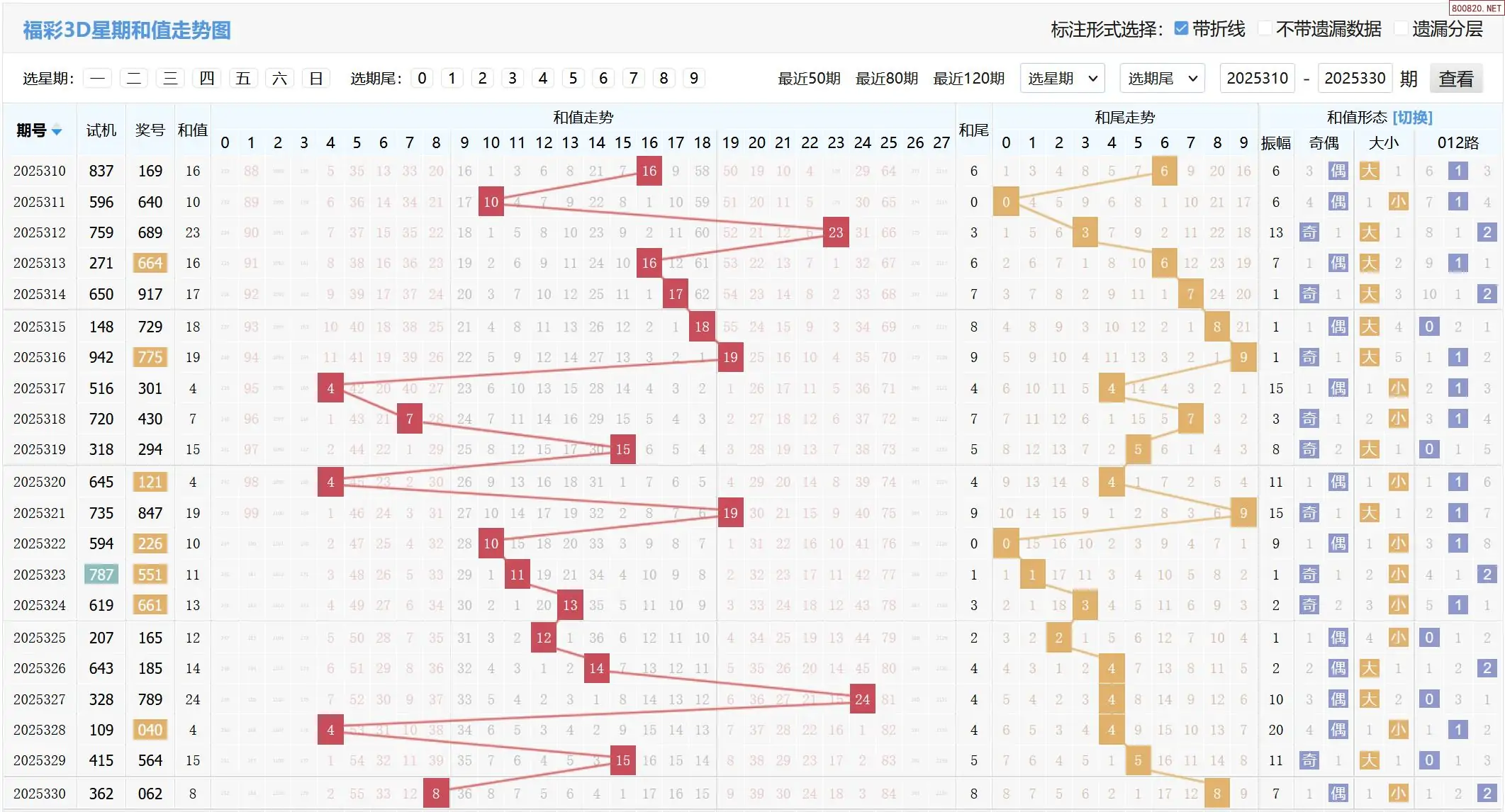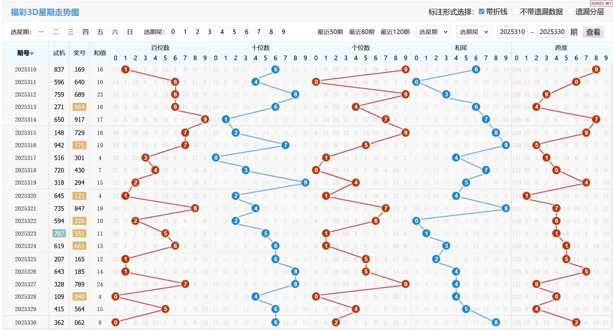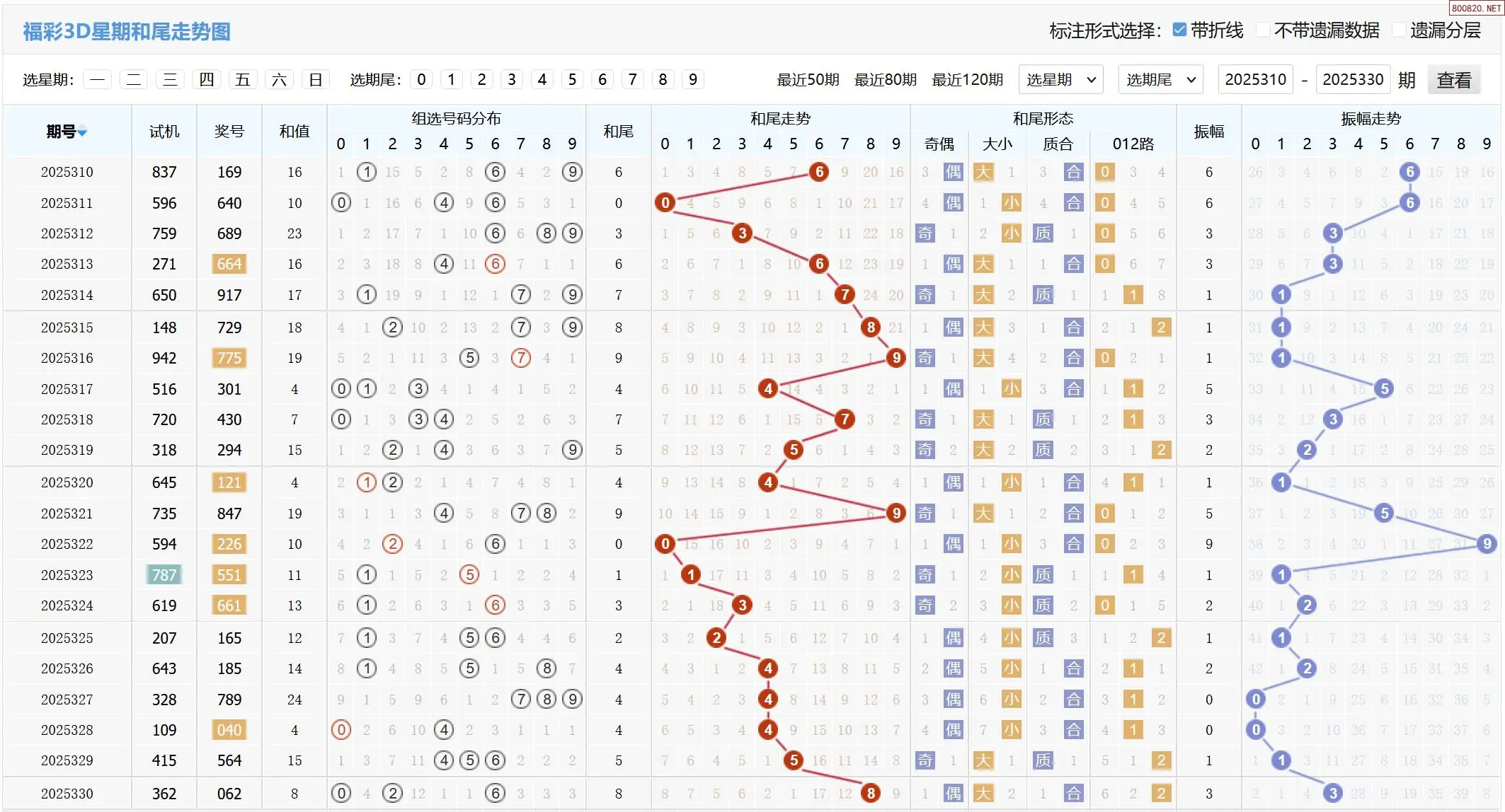 2025331期福彩3D基本走势图如下: