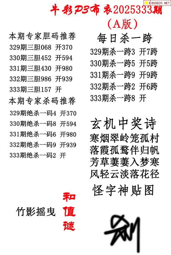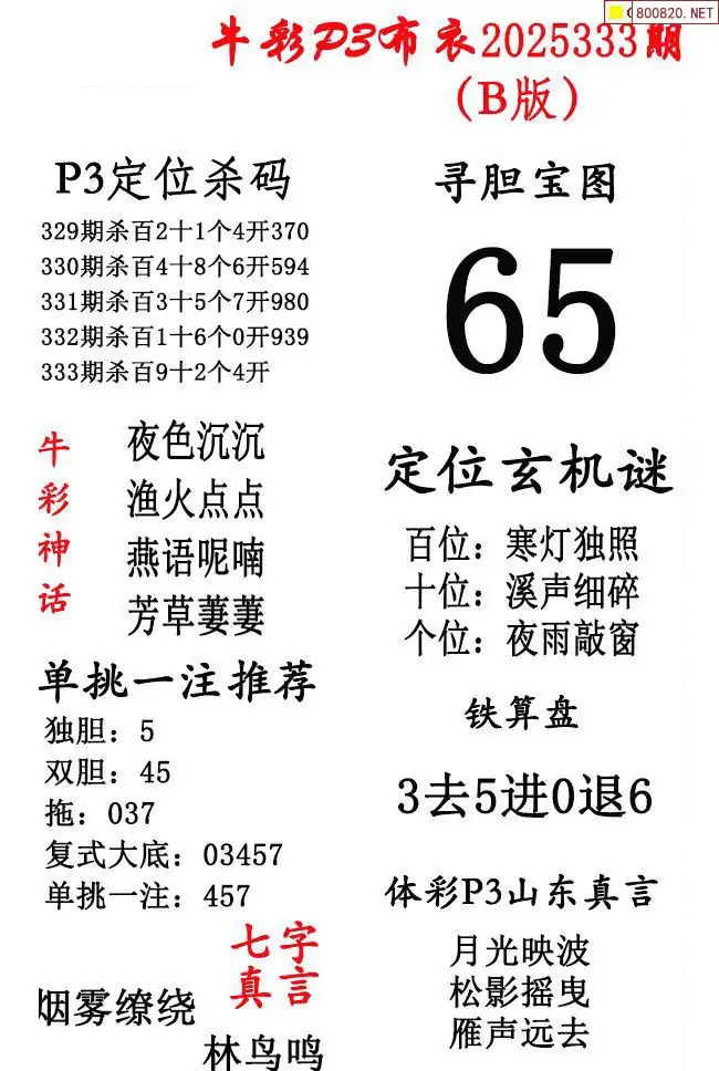 牛彩体彩P3布衣2025年333期AB版图谜(精华版)