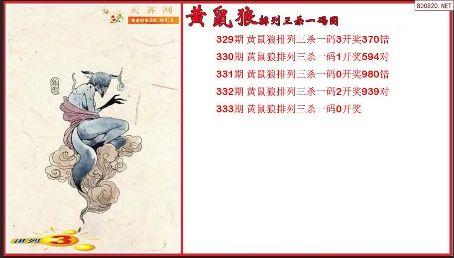 排列3第2025333期黄鼠狼杀一码图(原创)