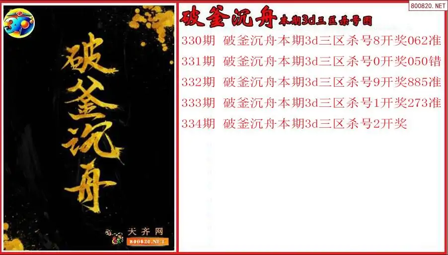 破釜沉舟2025334期本期3d三区杀号图(原创)