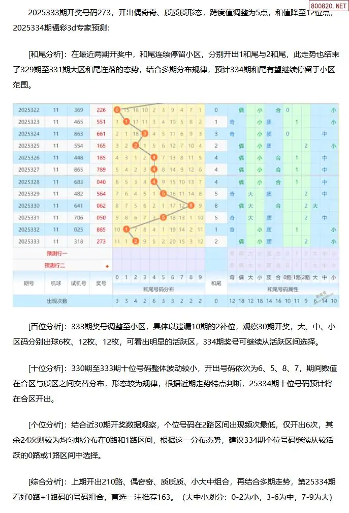 福彩3D第2025334期[玩彩高手]最准最新3d号码预测