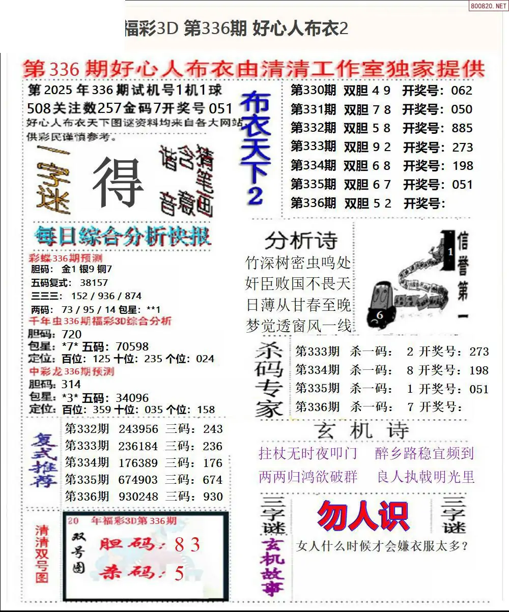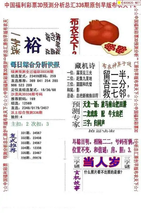 您现在所在的位置: 天齐网 >> 福彩3D >> 3D图谜 >> 正文
