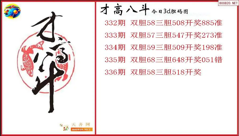 才高八斗2025336期今日3d胆码图(原创)