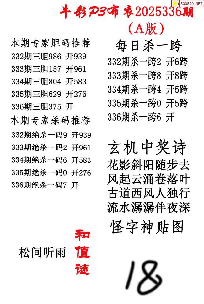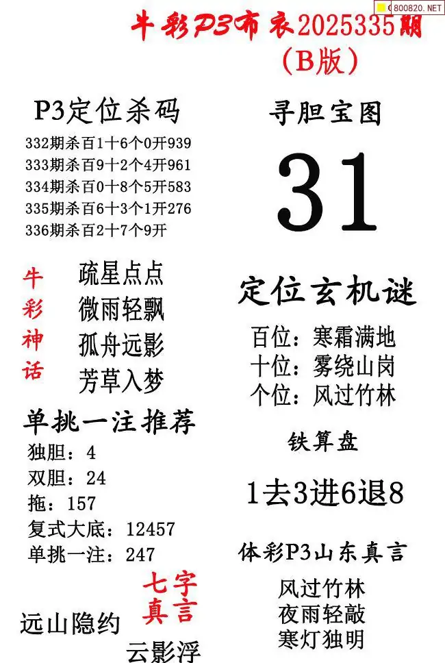牛彩体彩P3布衣2025年336期AB版图谜(精华版)