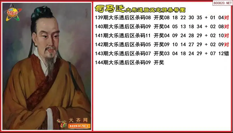 司马迁2025144期大乐透后区定胆杀号图-原创