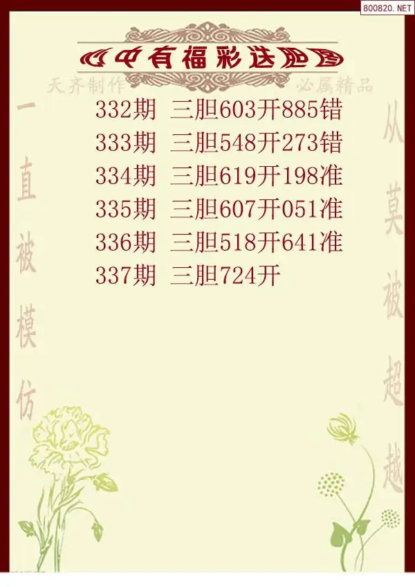 2025年337期心中有福福彩送胆图谜(天齐网原创)
