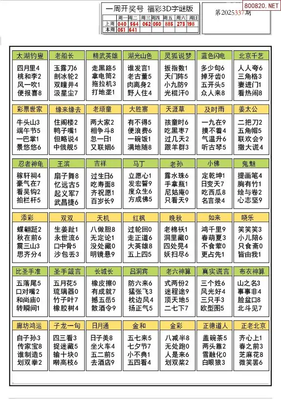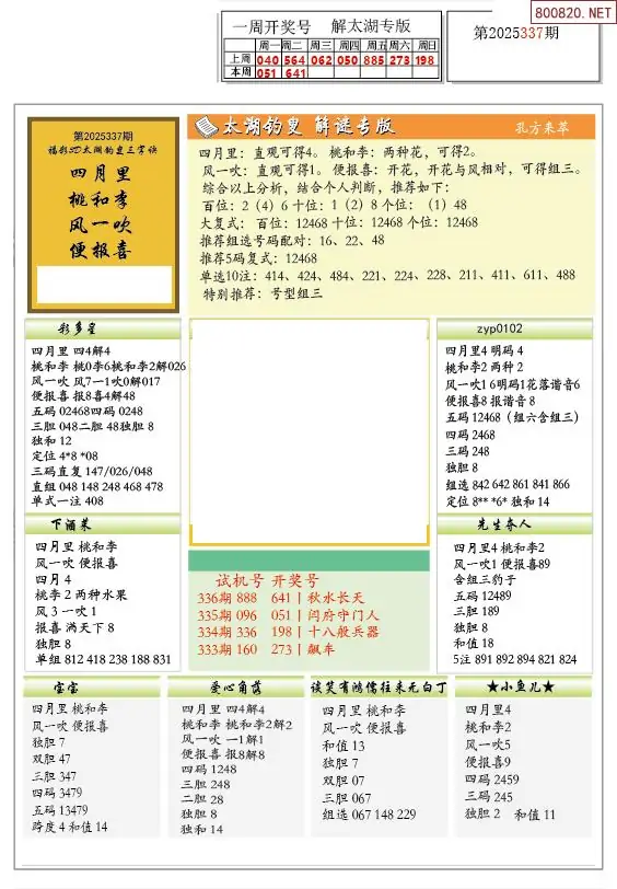 25年337期解太湖3d字图迷汇总彩报