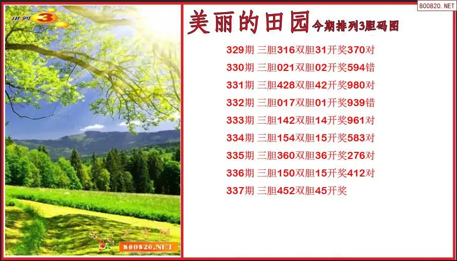 美丽的田园2025337期今期排列3胆码图(原创)